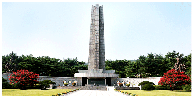 여기는 민족의 얼이 서린 곳 조국과 함께 영원히 가는 이들 해와 달이 이 언덕을 보호하리라.